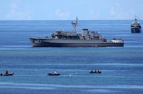 Đội người nhái thả thủy lôi phục vụ hoạt động tập trận.