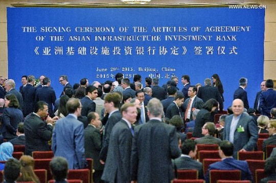 Sáng nay 29/6, đại diện 57 nước tham gia ký kết thỏa thuận thành lập Ngân hàng Đầu tư Hạ tầng châu Á (AIIB) do Trung Quốc khởi xướng. Riêng Mỹ và Nhật Bản từ chối tham gia ngân hàng này. Nhưng Bắc Kinh thì vẫn luôn muốn đón chào hai vị khách khủng này.