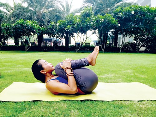 Tư thế thứ năm: Nằm ôm gối (Pavan Mukhtasana)