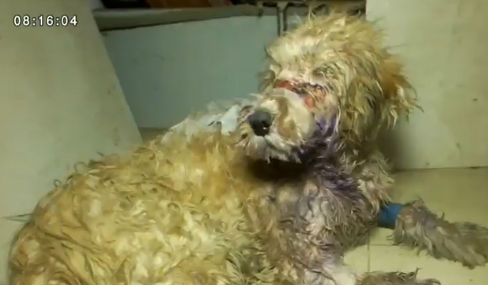 Mới đây, báo chí và các kênh truyền hình Thái Lan xôn xao câu chuyện thương tâm về một chú chó Poodle bị đối xử tàn nhẫn, hành hạ như thời trung cổ mới. Kèm theo đó là video ghi lại cảnh nhân viên trung tâm cứu hộ chữa trị cho chú chó poodle.Theo đó, vào ngày hôm qua (2/7), các tình nguyện viên của một trung tâm cứu hộ chó mèo đã tìm thấy chú chó này trong tình trạng bị thương nghiêm trọng, lông bết dính.Theo hình ảnh trong clip, do chiếc mõm của chú chó bị buộc dây cao su chặt, lâu ngày khiến vết thương ăn sâu và thậm chí còn bị hoại tử. Đã nhiều ngày qua chú không được ăn uống, cơ thể gày gò, ốm yếu.