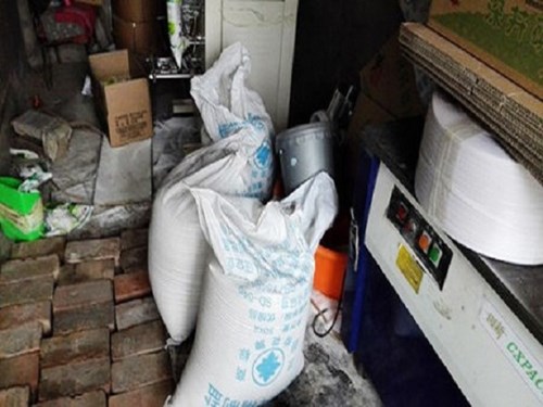 Muối công nghiệp được tìm thấy trong xưởng "đóng gói muối ăn cao cấp" của các đối tượng