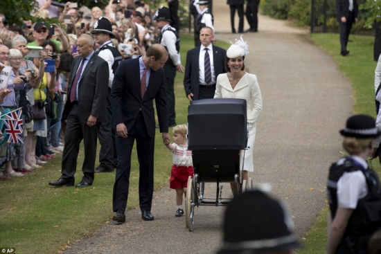 Những hình ảnh ấn tượng của gia đình hoàng tử xứ Cambridge cùng 2 "thiên thần" trong lễ rửa tội ngày hôm qua (5/7), tại nhà thờ St Mary Magdalene nơi mà bà nội của bé, Công nương Diana, đã từng được rửa tội.