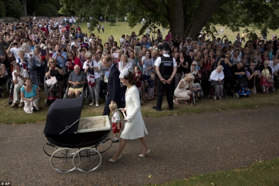Công nương Kate Middleton bồng công chúa nhỏ của mình vào nhà thờ làm lễ rửa tội.