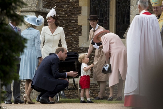 Trong khi cô em đang say sưa ngủ trên tay của mẹ thì cậu anh trai George hiếu động bên cha khi cả gia đình đang trò chuyện với Nữ hoàng.