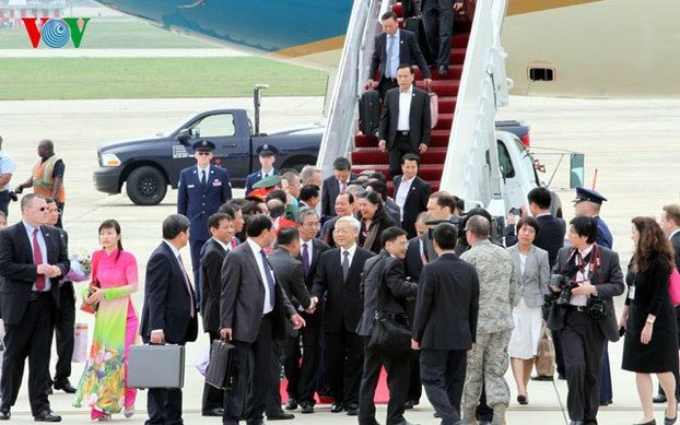 Máy bay chở Tổng bí thư Nguyễn Phú Trọng và đoàn đại biểu cấp cao Việt Nam đã hạ cánh tại sân bay quân sự Andrew, bang Maryland Chiều ngày 6/7 theo giờ Hà Nội