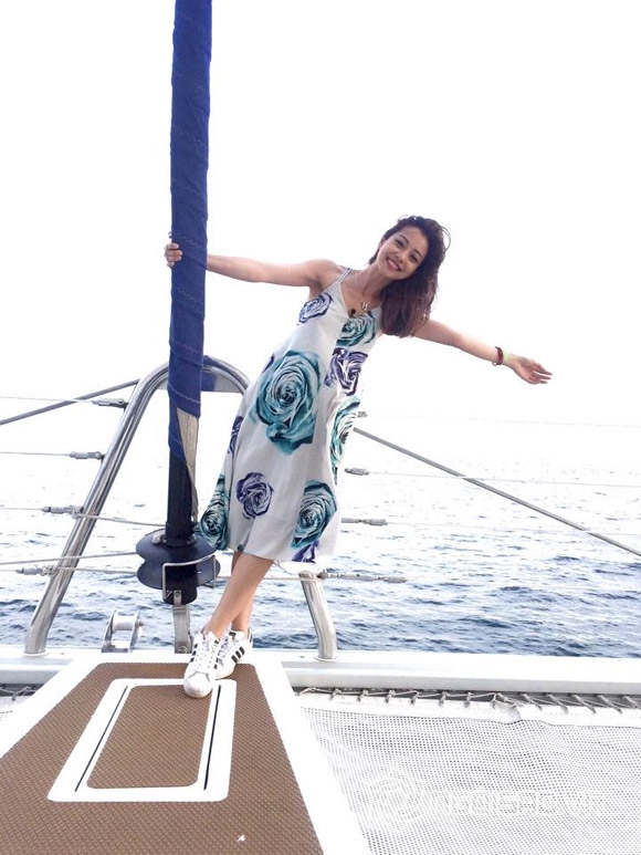 Mới đây Jennifer Phạm đã khoe những hình ảnh đời thường trên trang cá nhân. Trong ảnh, Hoa hậu châu Á tại Mỹ 2005 sành điệu với váy họa tiết hoa và khoe gương mặt xinh tươi trên biển.