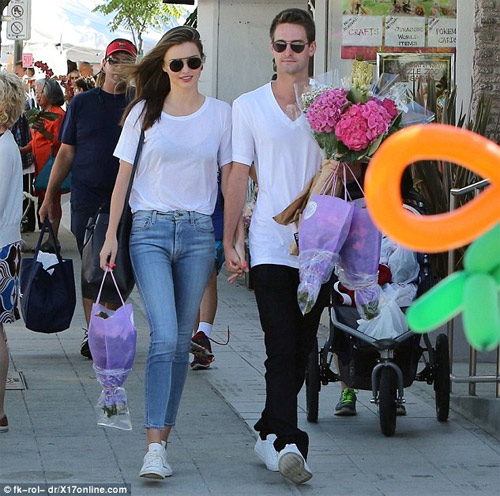 Miranda và Evan nắm chặt tay nhau không rời. Họ cầm trên tay những bó hoa tươi vừa mua ở chợ nông sản LA Farmers. Gương mặt cặp đôi toát lên vẻ hạnh phúc, tươi tắn. Thỉnh thoảng Evan Spiegel nói câu gì đó hài hước khiến Miranda mỉm cười không ngớt.