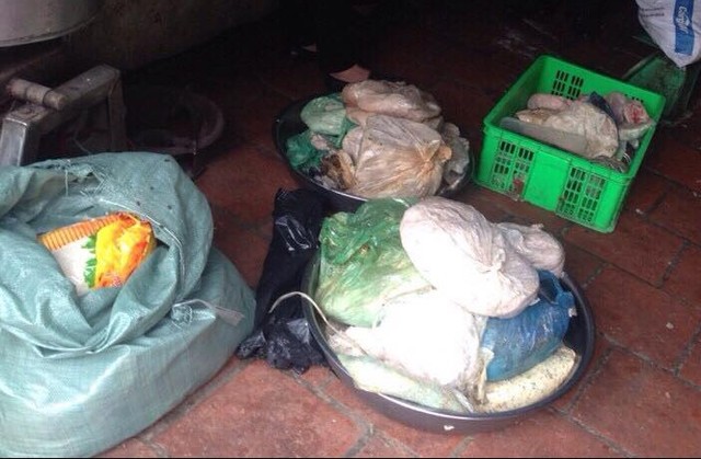 Qua quá trình kiểm tra thực tế, các cơ quan liên ngành đã thu giữ 165kg thịt lợn đang trong quá trình dùng để chế biến nem chua, giò mọc không có hóa đơn và đã bốc mùi hôi thối.