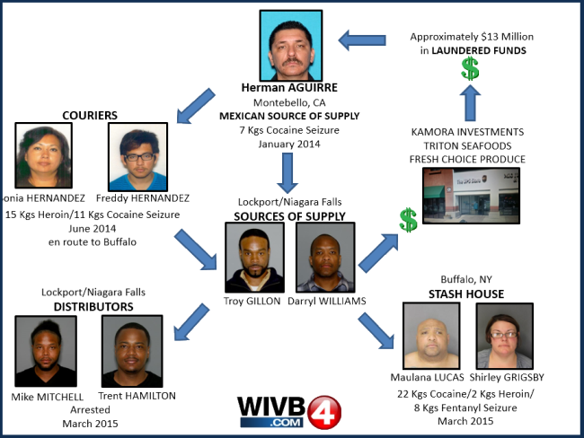 Các quan chức cho hay, cuộc điều tra dẫn đến kết quả thu giữ 40 ký cocaine (một dạng ma túy chiết xuất tự nhiên), 17 ký heroin (dạng ma túy hỗn hợp chiết xuất tự nhiên +pha chế) và 8 ký Fentanyl có giá trị khoảng $3,5 triệu Mỹ kim trong ba cuộc bố ráp riêng biệt được tiến hành ở Buffalo, Nebraska và California từ đầu năm 2014. Công tố viên cho hay tổng lượng ma ma túy và thuốc tịch thu lần này là một trong những vụ thu giữ lớn nhất trong lịch sử Hoa Kỳ.