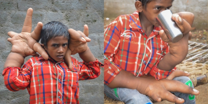 VBF-Một cậu bé người Ấn Độ đang sở hữu đôi bàn tay to nhất TG khi mới chỉ 8 tuổi.Nhưng đây lại là 1 sự phiền phức cho cậu bởi luôn bị mọi người xa lánh khiến cậu không thể tới trường.Mới đây, Kaleem một cậu bé 8 tuổi sống tại Ấn Độ, đã được phẫu thuật thay đổi cuộc sống. Bởi vì có bàn tay khổng lồ, hai bàn tay của Kaleem nặng đến 8kg và mỗi ngón tay dài hơn 33cm, cậu bé đã bị cấm đến mọi ngôi trường trong thành phố.Cậu bé mắc triệu chứng macrodactyly hay còn được gọi là triệu chứng bàn tay phát triển ngoại cỡ. Tình trạng này là bẩm sinh và cực kì hiếm gặp, những trẻ mắc triệu chứng này có bàn tay hoặc chân phát triển lớn hơn so với bình thường và các ngón bị dính liền với nhau do sự phát triển quá mức của xương và mô mềm.