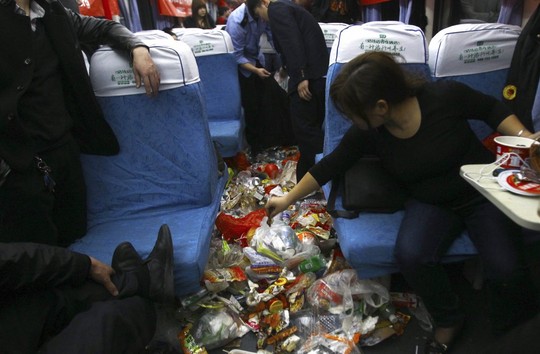 Hiện nay, người dân Trung Quốc đang phải đối mặt với những cơn ác mộng trên xe lửa. Tồi tệ hơn hết là tình trạng quá tải, nhiều người dân bỏ rác ở bất cứ đâu trên tàu và vô hình trung tàu lửa hóa thành tàu “rác”. Rác ngập ngụa đến độ nhiều hành khách phải đứng lên ghế để có chỗ trống cho nhân viên dọn dẹp.