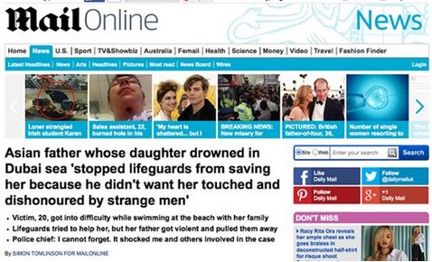 Hôm 10/8, đồng loạt các báo đài trên thế giới đăng tải sự phản đối đến phẫn nộ đối với người cha châu Á thà để con mình chết đuối còn hơn bị nam nhân viên cứu hộ chạm vào cô. Theo đó, khi cái chết gần trong gang tấc đối với con gái mình thì ông ta bắt nam nhân viên cứu hộ ngừng cứu con gái mình - đang bị đuối nước trên biển - do không muốn đàn ông lạ mặt chạm vào người cô.