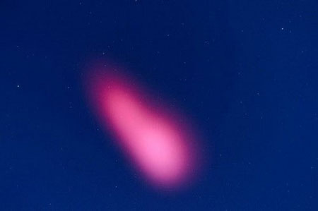 Một đốm sáng màu hồng bí ẩn xuất hiện trên bầu trời bang Arizona vào ngày 25.2.2015 ngay sau khi NASA phóng tên lửa từ vùng sa mạc White Sands ở bang lân cận New Mexico - Ảnh: Reuters