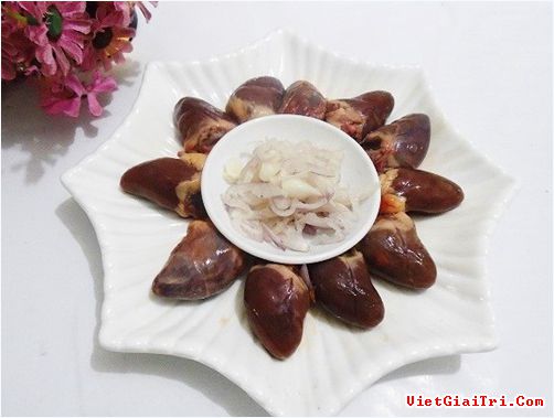 Bước 1: Tim gà rửa sạch bằng nước muối loãng, cắt làm đôi. Ướp tim gà với hành khô băm nhỏ, ½ thìa bột canh.