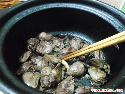 Bước 2: Phi thơm hành khô với chút dầu ăn cho tim gà vào xào chín rồi cho ra bát nhỏ.