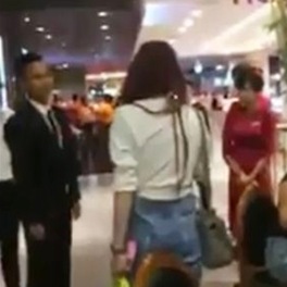 H́nh ảnh Bella bị nhân viên bảo vệ ṭa nhà Lotte yêu cầu rời khỏi khu TTTM này.