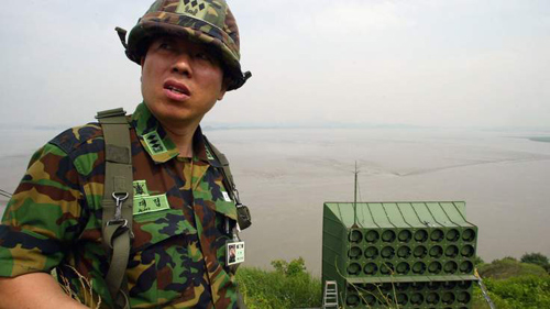 Hàn Quốc từng cho ngừng hệ thống loa tuyên truyền vào năm 2004. Ảnh: Sky