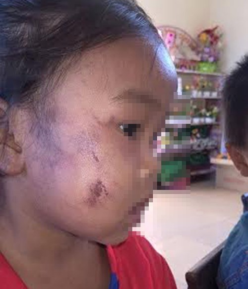 Cháu Thúy Hiền với vết thương trên khuôn mặt thơ dại