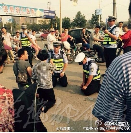 VBF-Hiện dân mạng TQ vẫn chưa hiểu chuyện gì xảy ra mà khiến cho cả 2 người cảnh sát này lại phải quỳ gối như vậy. Theo như nhiều người thì nguyên do là con trai bà này đã uống rượu khi tham gia giao thông và người phụ nữ kia đã đến xin cho con.Một đoạn chia sẻ trên mạng xã hội với nội dung “Cảnh sát giao thông Hàm Đan và người dân quỳ lạy nhau trên đường” cùng một tấm hình minh họa đã gây xôn xao dư luận Trung Quốc.Trang CNR (Trung Quốc) cho hay, thông tin và bức ảnh cho thấy hai cảnh sát quỳ gối trước hai người dân, một nam, một nữ đã được chia sẻ với tốc độ chóng mặt trên mạng xã hội.