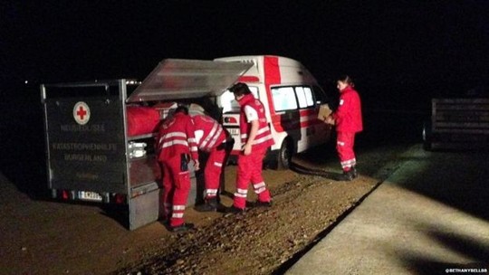 Hội Chữ thập đỏ đang chờ đợi khoảng 800-1.500 người di cư di chuyển tới một trong những trung tâm nhập cư của mình. Ảnh: BBC