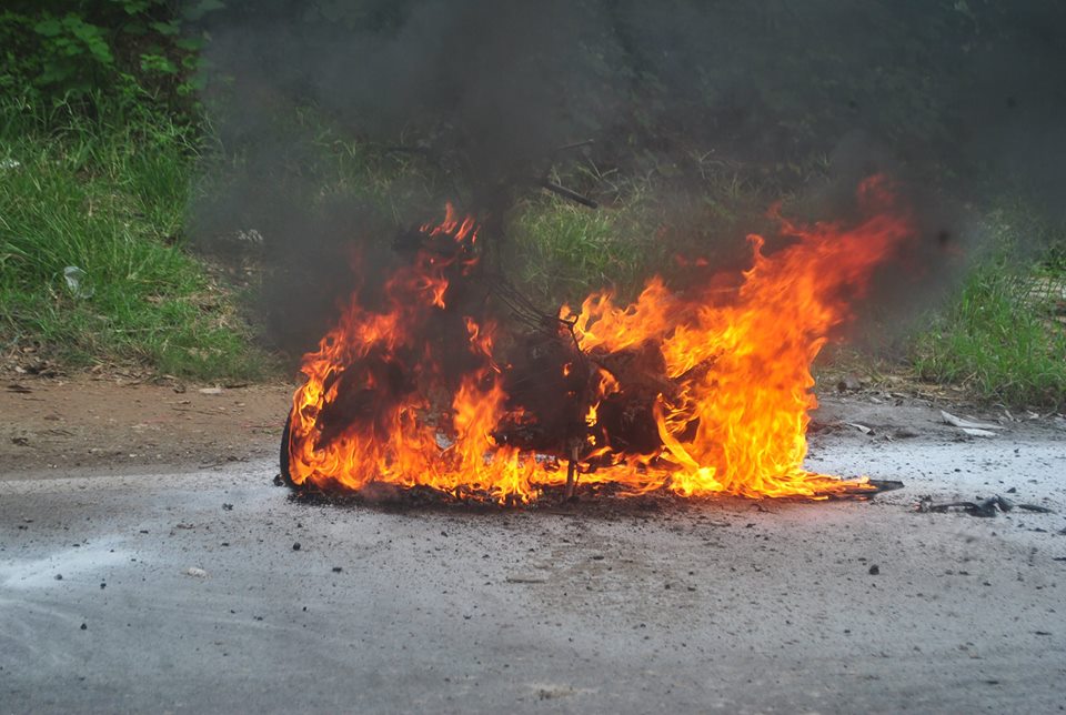 Anh Nam cho hay, do ngọn lửa bốc lớn dữ dội, đồng thời không có dụng cụ chữa cháy nên chủ nhân chiếc xe và những người chứng kiến đành đứng nhìn, không thể làm gì khác. Sau khoảng 30 phút, chiếc xe máy chỉ còn trơ lại khung sắt.