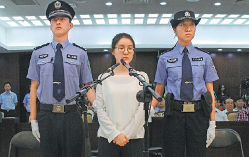 Guo Meimei hầu tòa hôm qua tại Bắc Kinh. Ảnh: China Daily
