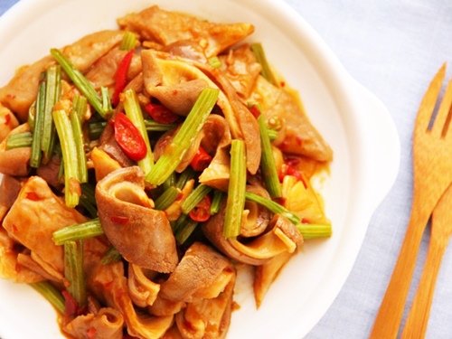 Món dạ dày heo xào cay ngọt thế này rất hấp dẫn.