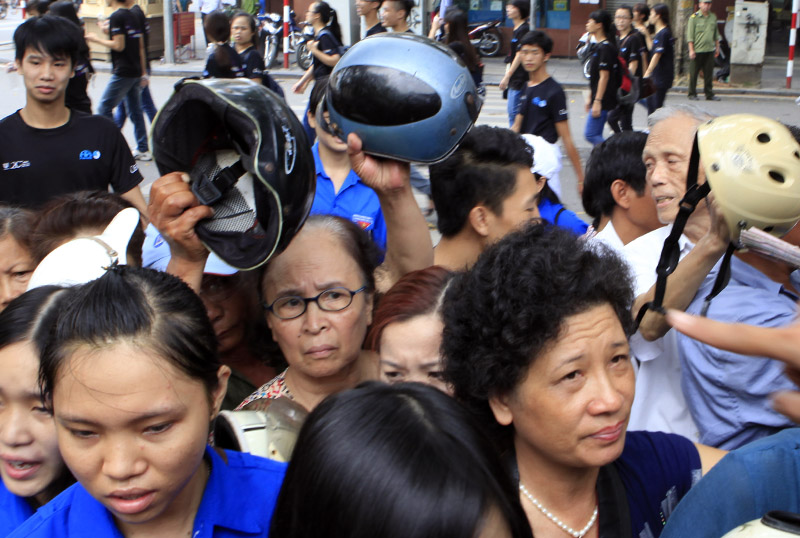 Người dân đổ xô ra đường để được đổi mũ bảo hiểm xịn, chấp nhận đứng xấp hàng hơn 3 giờ, để hy vọng được cái mũ rẽ tiền không chất lượng, để lấy tiếng ngu, lấy tiếng bần cùng, nghèo đói!