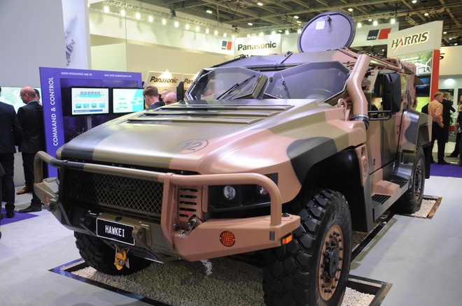 Xe cơ động chở quân Hawkei được trưng bày tại hội chợ. Ảnh: Defense blog