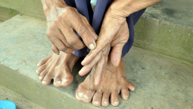 Bàn chân phải dư 2 ngón và bàn tay phải dư 1 ngón của ông Hảo - Ảnh: Ngọc Tài