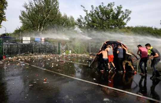 Hôm qua 16/9, không thể ngăn chặn làn sóng di cư bằng hàng rào kẽm gai, cảnh sát chống bạo động Hungary được huy động bắn hơi cay và vòi rồng để buộc người di cư trở về Serbia từ khu vực biên giới. Cảnh tượng biên giới Hungari giờ đây không phải là làn sóng mà là bão di cư khiến nước này phải sử dụng đến các biện pháp quân sự để ngăn lại.