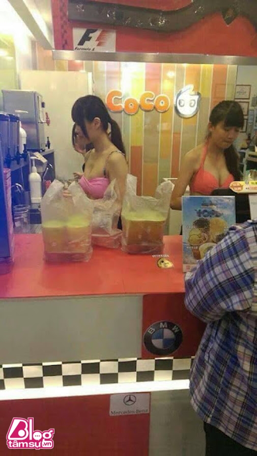 Một cửa hàng trà sữa tại Đài Loan mới đây đã thu hút sự chú ý của cư dân mạng nói riêng và người dân nói chung khi có cách phục vụ vô cùng đặc biệt. Dường như chủ quán trà sữa này nhắm trực tiếp đối tượng khách hàng là nam giới nên đã lựa chọn cho nhân viên nữ phục vụ trang phục đồng phục đó là bikini.