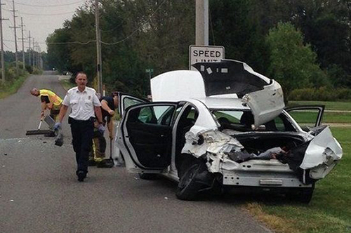 Chiếc xe lao lên, va chạm với một xe buýt chở học sinh, làm cậu bé bị thương nhẹ ở đầu. May mắn là trên xe buýt lúc đó không có trẻ em, còn tài xế Becky Dunithan, 62 tuổi, cũng không bị thương.