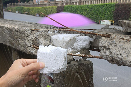 Cận cảnh phần ruột xốp của lan can đường. Ảnh: QQ