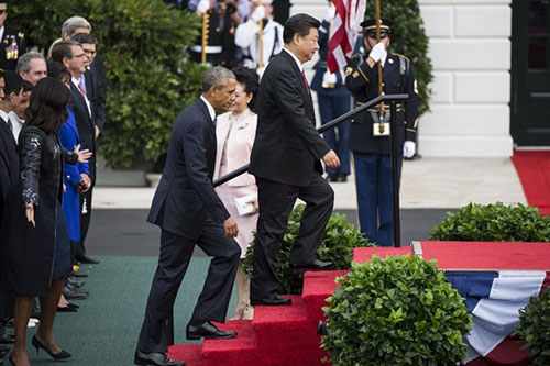 Vẫn theo nghi lễ thông thường, chiều qua Tổng thống Mỹ Barack Obama đã đón tiếp Chủ tịch Tập Cận Bình trước khi hai ông hội đàm trong phòng Bầu dục. Sự kiện này thu hút sự chú ý của toàn thế giới trong khi tình hình căng thẳng của hai nước chưa có dấu hiệu được cải thiện. Mọi người đếu trông chờ ở một giải pháp ôn hòa.