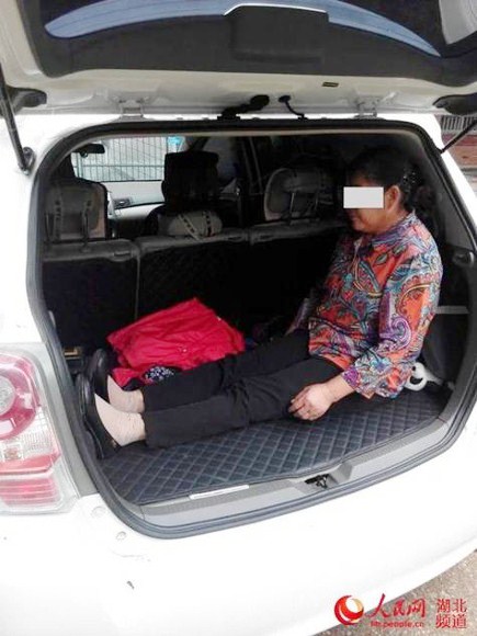 Bà cụ phải ngồi trong cốp xe để nhường chỗ cho cháu nằm