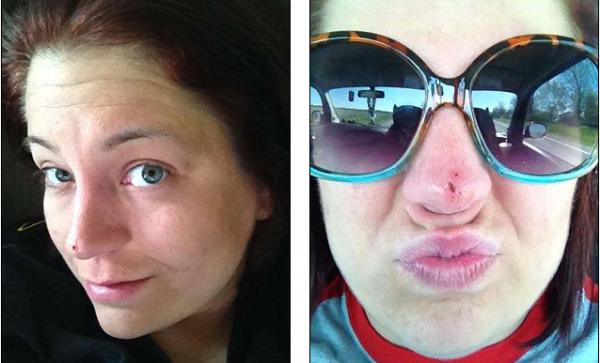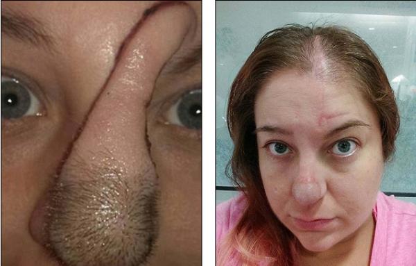 Hình ảnh cô Towner 10 ngày sau phẫu thuật tái tạo mũi từ da trên trán của mình.