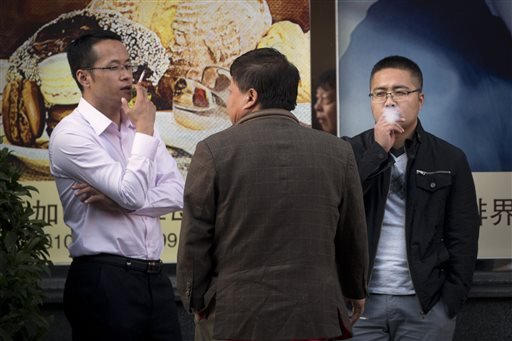 Đàn ông Trung Quốc hút thuốc lá ở thủ đô Bắc Kinh. Ảnh: AP