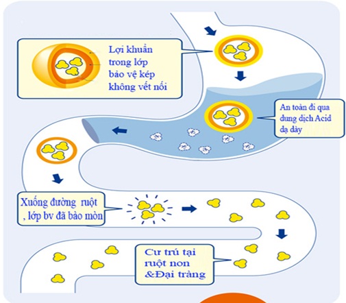 Lợi khuẩn Bifido được bảo vệ an toàn khi đi qua môi trường axit dạ dày