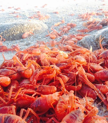 Đây là hiện tượng lạ xảy ra ở bờ biển phía nam vịnh Monterey, California, Mỹ. Đó là do hàng triệu con cua tràn vào bờ và mắc cạn do ảnh hưởng của hiện tượng El Nino ở vùng xích đạo Thái Bình Dương. Sự biến đổi khí hậu đã khiến cho nhiều hiện tượng thiên nhiên kinh hoàng đã diễn ra mà con người không thể lường trước được.