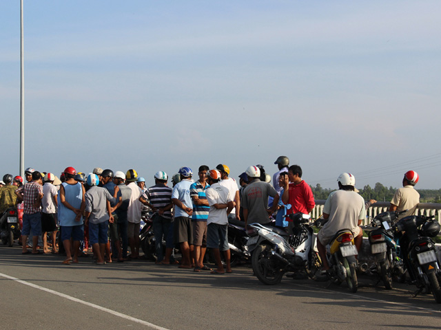 Một vài nhân chứng cho biết, sáng nay họ thấy một người đàn ông khoảng 40 tuổi chạy xe lên cầu, một lúc sau thì không thấy người đâu chỉ thấy xe máy, điện thoại di động được để trên đôi dép, nên trình báo công an.