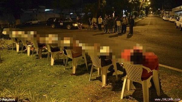Sáng sớm 24/10, người dân Uruapan, bang Michoacan, Mexcico đã vô cùng kinh hãi khi phát hiện ra 7 xác chết bị trói riêng rẽ trên 7 chiếc ghế nhựa giữa trung tâm thành phố. Đây là một nút giao thông ở đây nên rất dễ phát hiện. Họ dường như đã bị bắn chết trước khi bị trói vào ghế.