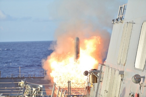 Tàu USS Lassen phóng tên lửa tấn công mặt đất Tomahawk trong cuộc tập trận Multi-Sail 2015.