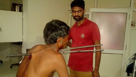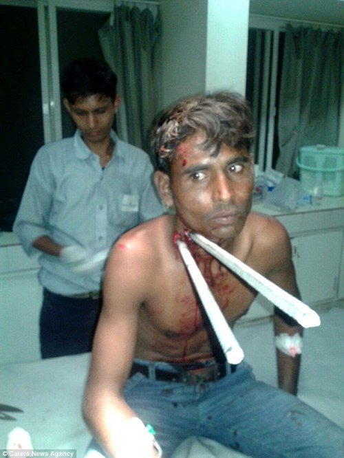 Hai thanh sắt đâm xuyên qua cổ anh Rajput