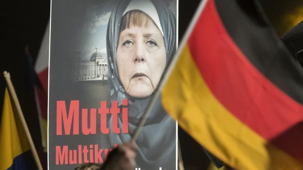 Số người Đức phản đối bà Merkel vì chính sách cởi mở với người nhập cư ngày càng gia tăng - Ảnh: AP
