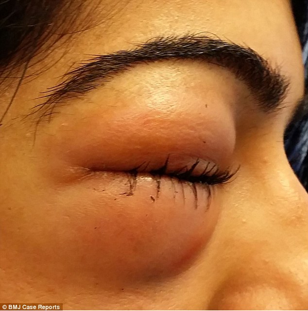 Đôi mắt sưng to như quả bóng của người phụ nữ sau khi xì mũi mạnh