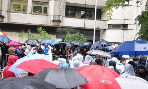 Vì lượng người đăng ký quá đông nên những người này buộc phải đứng ngoài trời thâu đêm. Họ nhích từng bước chân để mong được trở thành những người đầu tiên của ngày hôm sau hoàn thành thủ tục đăng ký tị nạn, bắt đầu chặng đường dài xin ở lại Đức.