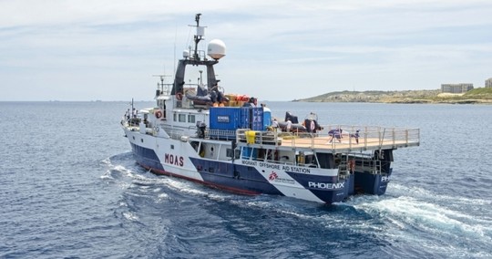 Tàu MOAS thực hiện sứ mệnh giải cứu trên biển. Ảnh: Malta today