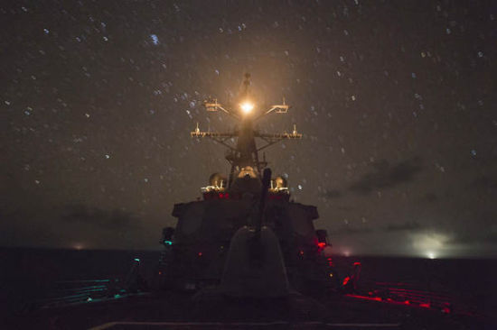 Hình ảnh tàu khu trục USS Fitzgerald của Mỹ tuần tra biển Đông trong đêm 11/11 do Hạm đội Thái Bình Dương (Mỹ) công bố.