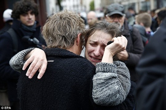 Người dân bật khóc sau khi đặt hoa tưởng niệm người đã khuất vì khủng bố